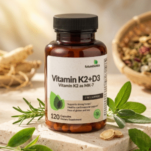Vitamine K2 + D3 Futurebiotics 5000UI est un complément alimentaire combinant deux nutriments essentiels pour soutenir la santé des os, le système immunitaire et l’utilisation optimale du calcium dans l’organisme. Cette formule contribue au maintien d’une ossature normale et au bon fonctionnement du système immunitaire.