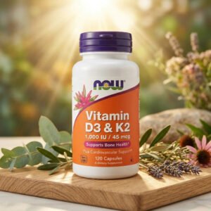 Vitamine D3 + K2 1000 UI NOW Foods est un complément alimentaire associant deux nutriments essentiels pour soutenir la santé des os, l’absorption du calcium et le fonctionnement normal du système immunitaire. Cette formule en gélules végétariennes contribue également au maintien d’une fonction musculaire normale et d’un équilibre nutritionnel optimal.
