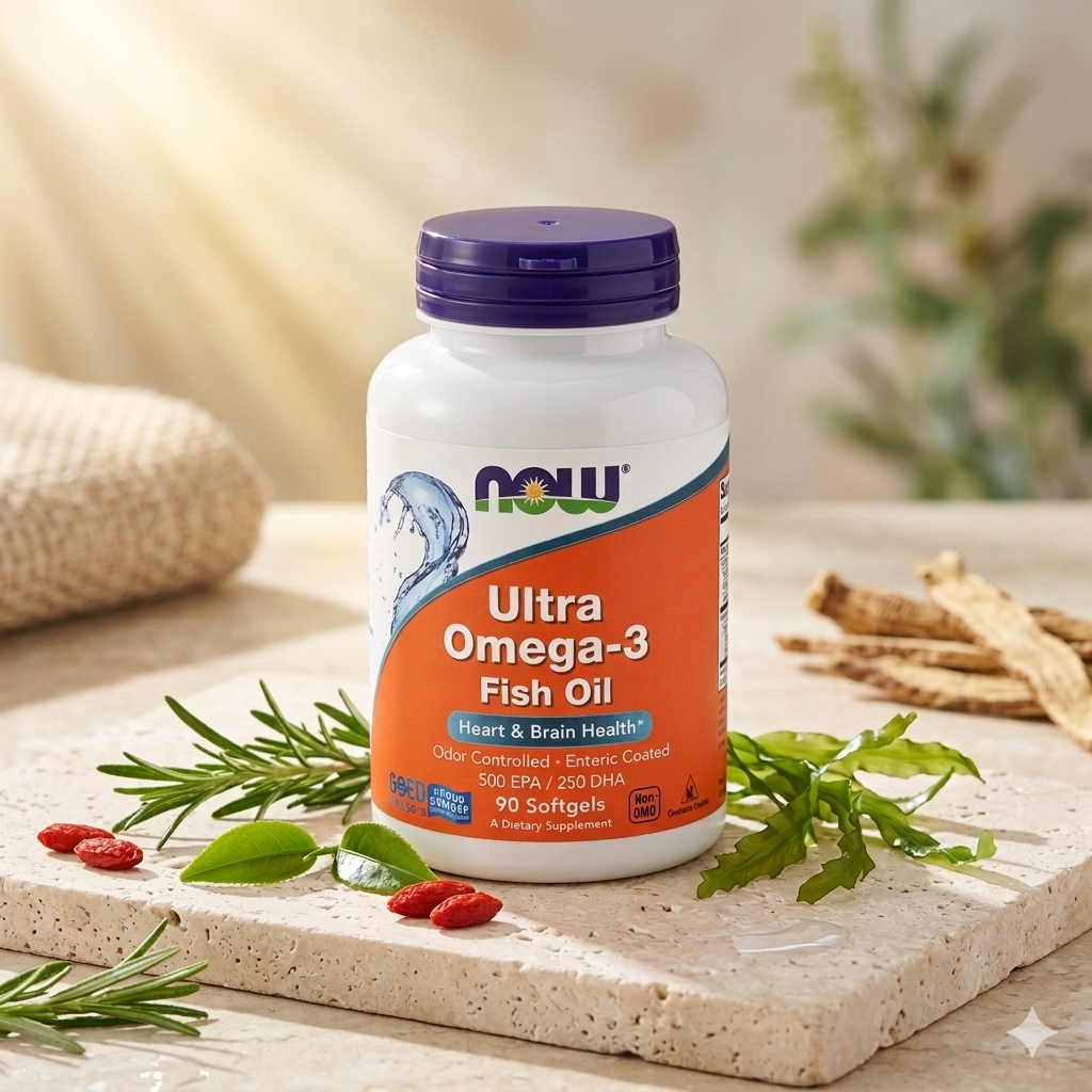 Ultra Oméga-3 500 EPA / 250 DHA – NOW Foods est un complément alimentaire à base d’huile de poisson hautement concentrée en acides gras essentiels oméga-3. Cette formule apporte des quantités élevées d’EPA (acide eicosapentaénoïque) et de DHA (acide docosahexaénoïque), deux nutriments reconnus pour leur rôle dans le maintien d’une bonne santé cardiovasculaire et cognitive.