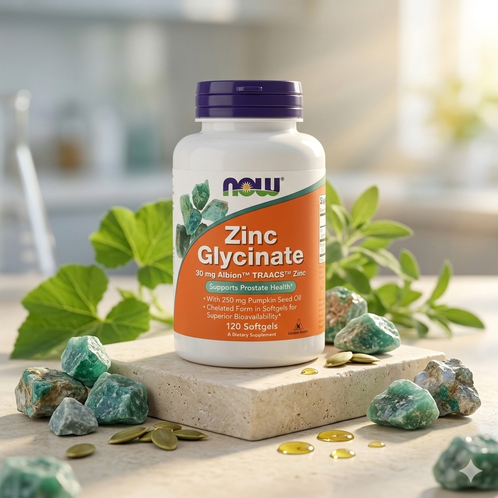 Zinc Glycinate – NOW Foods est un complément alimentaire fournissant du zinc sous forme de glycinate, une forme reconnue pour sa bonne biodisponibilité et sa tolérance digestive.